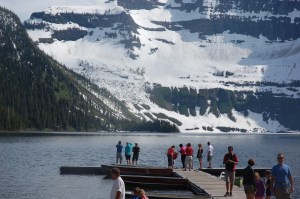 The past two days have been our slow down. We have kept our tent in one spot and have enjoyed doing things with minimal driving. As noel’s last post explained, we have met the nicest folks ever and are lucky to call them our neighbors. We have shared many stories and glasses of ginger wine. We spent yesterday hiking to a breath taking view of the waterton area and canoeing on a lake. This canoe trip, as Noel joked was successful….mainly for two reasons. 1. we did not tip over and 2. we did not divorce. This lake was not the biggest lake ever, but being between two mountains it tends to get a harsh wind across it. Mine and Noel’s experiences together on water are varied and hysterical, so I always am a little nervous heading out. We were pushed off from land just as a strong gust of wind settled on the lake…….it took us to the dock as we manically paddled to exit through a very narrow outlet. Our exit was met by giggling from a young group sitting on the deck. We did make it, finally, out into the lake. As we argued about our paddling strokes, and Henna yelled from the middle, we were given the best views ever. The farthest end of the lake still had snow and ice on it, and every now and then we paddled past mini ice bergs. Our goal was to not settle on top of the ice and need rescueing. In the middle of the lake we entered into Montana, USA and there we had our July 4th celebration together. The rest of our day included a bear on the side of the road, good coversation and a never ending sun.
