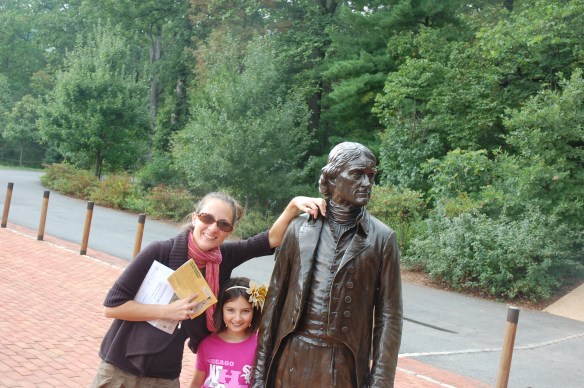 Ever wonder whose home that is on the back of the nickel? It is Mr. Jefferson’s’, the one- two-three man (first vice president, second secretary of state, and third president of the United States). Please do not confuse him with the one-two punch of Dernier and Sandberg of the 1984 Cubs. After seeing recreated Colonial Williamsburg and very much alive Washington D.C., it was interesting to visit Monticello. There are no actors dressed up in funny clothes here. Just a wonderfully restored home of one the greatest men in American History. For a few bucks one is treated to a tour of a classic architectural gem that offers insight into the celebrated man’s interests and talents. No pictures were allowed inside the home, but I can tell you it is filled with original and replica fossils (President Jefferson was fascinated with mastadones), a lot of books, and very interesting details like a dumb-waiter that went to his wine cellar. It should be noted too that upon his death Monticello went first to a daughter who then sold to a local before being purchased by Uriah P. Levy. Mr. Levy was the first Jewish Commodore (Admiral) and very much admired the former president. First him and then later his nephew took immaculate care of the home before selling it to a preservation society in the 1920s.