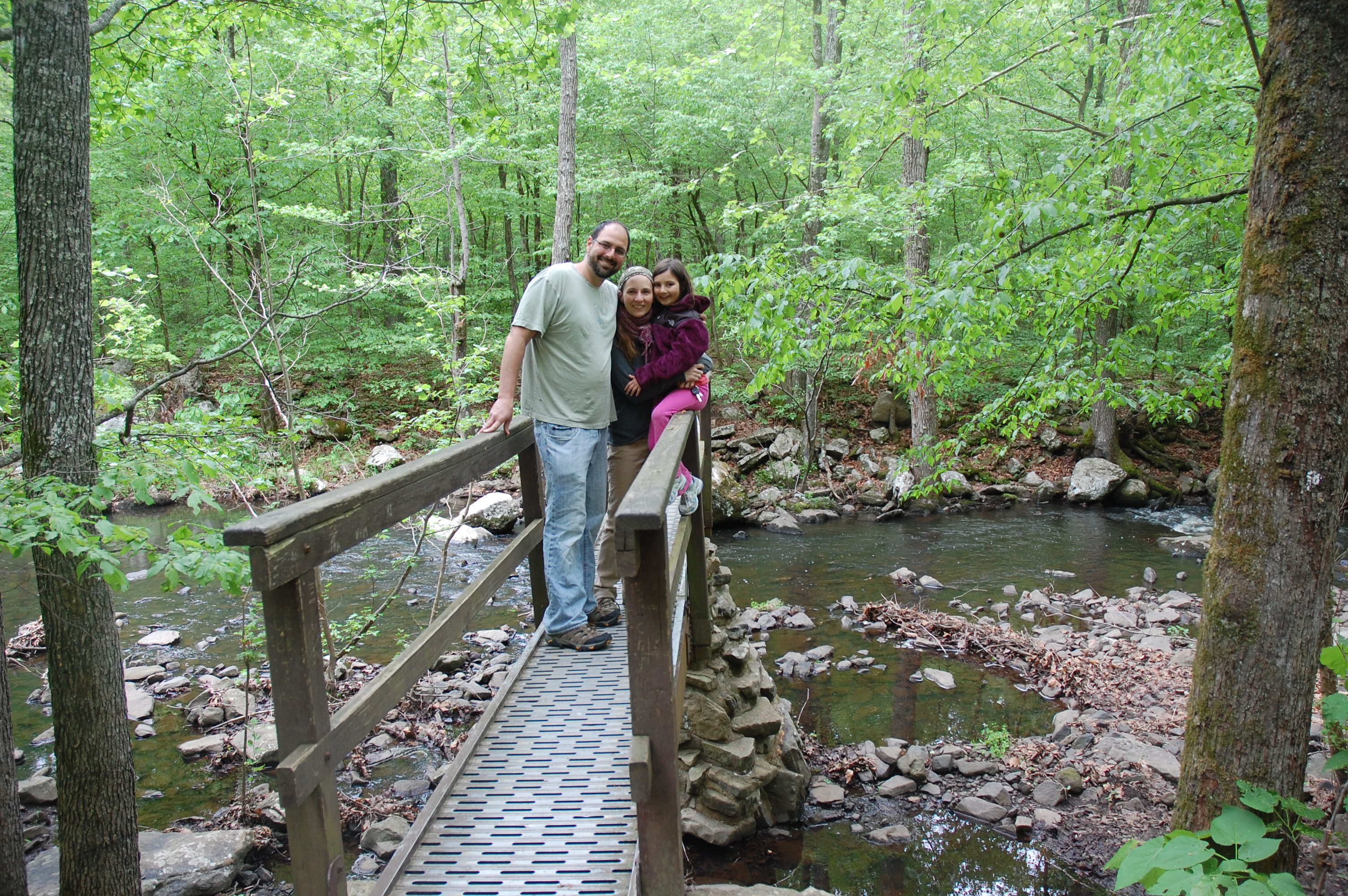 The number one highlight of our stay had to be a tornado not touching down on the cabin we were renting.  The spring day was hot and muggy when we got there and cool and crisp when we hiked the next day.  In between a band of tornadoes and thunderstorms with serious hail swept west to east.  We spent the night watching the local meteorologist pulling an all-nighter while we tried to match the Doppler to our Rand McNally map.  The meteorologist was truly heroic as he alternated between highly detailed warnings (if you’re near the DQ by state route 7 and 176 take cover), comfort (Morrilton, it is OK to come out from your basement), and pure rambling (I took this job mostly because my daughter was going to college nearby).  He started mid evening and was going strong in the early morning when we finally were able to get some sleep.  That night he earned his paycheck and I even dare say he acted heroically.  A few weeks after returning home I learned some other people were not as lucky as us.  A tornado touched down on a portion of I40 near Petit Jean and killed several people on the highway.  That spring dozens of people were also killed by tornados and our deepest sympathies go out to those who grieve them.