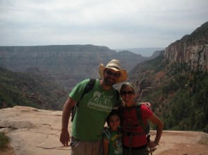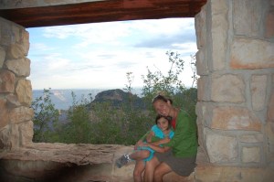 Well we knew we weren’t in Colorado once the desert set in. All that driving through lower elevations, sage brush, and mesas led us to the oasis from which I write these words. The North Rim of the Grand Canyon sits at almost 9,000’. At my campsite now I am surrounded by pine trees and the road leading to the canyon is lined with Aspens. Local time is 6:30 but my clock says an hour later (Arizona does not believe in daylight savings time) and my fingers are numb from the cold. If I were to guess I would say it is in the mid 50s. All of yesterday until moments before setting up camp the temperature varied from mid 80s to high 90s. In Cortez we left at 10 and the car thermometer read 93. Last night looking across the canyon to the South Rim I did not see any trees. It is hard to accurately read land miles away, but it seemed dry and hot. It might very well be given that the South Rim is some 1,500 feet lower in elevation. What it lacks in trees it makes up in crowds. We met several people who told us of going to the canyon and having to wait for parking spaces, traffic jams, and completely filled campgrounds. We wandered into our campground sometime around 5 and found it less than half filled. A campground closer to the rim (we are 20 miles away) and the lodge are completely booked, but it all had a casual feel to it. The main lodge here is truly magnificent and for the first time this trip I am jealous. Usually the campgrounds are friendly and more a part of the park, the hotels cold and far away. Here it is the reverse as the lodge features several decks spilling from the lobby with families hanging out on Adirondack chairs. The trails also seem to begin at the lodge creating a festive and intimate atmosphere. It all reminds me of the lodge at Starved Rock (both were built around the same time, both also experienced bad fires).