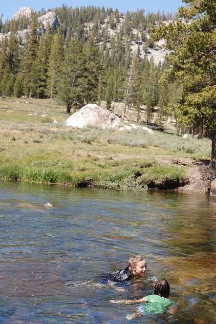 Well we lived through the night. We raced into the park, breezed through the Meadows in order to get to the campground we wanted only to find it almost completely empty. And that was the first Yosemite myth debunked; you do not need reservations in order to camp in the park. After setting up camp we returned to Tuolumne Meadows for a short hike and then swim in Soda Creek. Later we tasted the spring bubbling out of the nearby rocks. Conversations with rangers at the Meadow indicated that the serious bear problems are in the valley and not in the high country where we were camping (this was not exactly the truth).