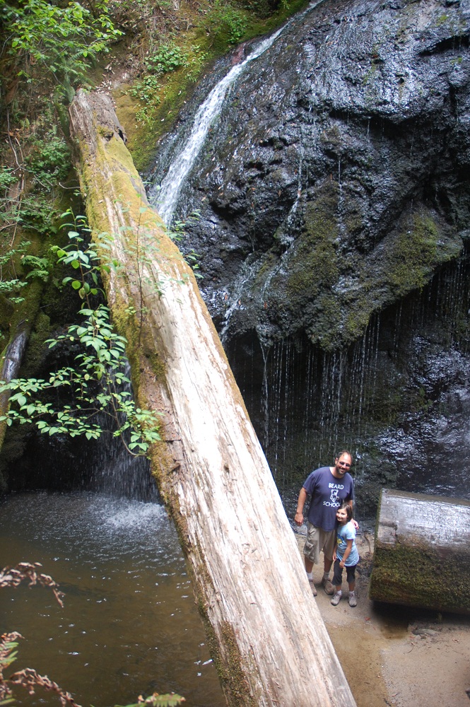 A mile or so north of Mendocino is the Russian River Gulch State Park. The park advertises 12 miles of hiking trails with the most popular of those miles leading to a waterfall. Our last serious hike was up Mt. Hoffman in Yosemite so we were pretty excited to take on the challenge. The trail meandered on a slight but steady incline past a few redwood stumps, at least one whole redwood, and into a fern lined jungle. It reminded us a lot of being on Washington’s coast. Henna loved the banana slugs and especially enjoyed stroking their tops so that their antennas withdrew. A good time was held by all.