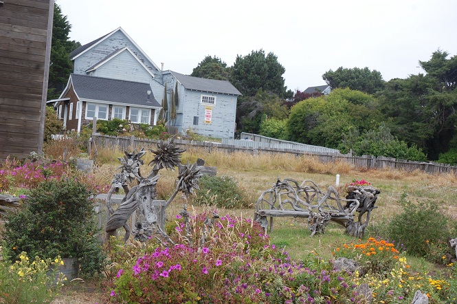 Mendocino is an artist colony, an expensive weekend destination (rooms with a shared bath start at $165), a hippie commune (the local grocery store is an organic only co-op; when we pulled in to town a group of men varying in ages from late teens to middle age where “making music” with their hands and an odd assortment of musical instruments and they did not look out of place), an artist colony, and a nature lovers paradise as the whole place seems to melt into the surrounding cliffs. All these different directions seem to pull the town a bit and not all the residents were welcoming to visitors. Besides the various store signs prohibiting cell phone usage, a shop keeper was visibly annoyed when I asked directions, another shop (a cute wine store) closed for a lunch break (with the shop keeper munching on a sandwich at the counter), and everyone there, visitor and resident alike, seemed to take pride in not being of or at somewhere else. But it made for a wonderful visit complete with book shopping (for Henna) and cliff strolling.