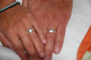 After a couple of false starts that included a very handy salesperson who tried pushing 70s disco era stuff, we found our rings.  Sterling silver, they did not fit us exactly right but after some hammering they were ours.  We celebrated with some Thai food.