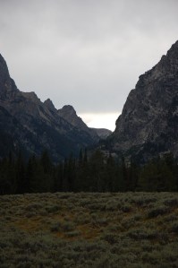 Woke up this morning around 5:00 AM and may have accidentally woken up Corey and Henna.  Instead of going back to bed we talked a bit and decided (with a strong dissent by Henna) to get up and take showers.  That is how stinky we were; Corey actually agreed to leave the tent before six in order to take a shower.  The nearest shower was Colter Bay (where we camped the first night).  So off we were a little after 6 watching the sun finish its rising and keeping an eye out for wildlife.  We saw many elk and a coyote and were clean and back at our campsite around 7:30.  I should mention it was in the mid-40s the whole time we were up.  I made coffee, Corey yawned a lot, and Henna went back to bed.  Around 10 we were properly caffeinated and full of yummy pancakes.