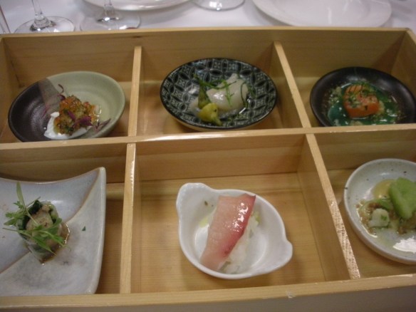 The Kitchen Table Menu consisted of fifteen tastings; each tasting was about two or three fork fulls. The other two dining options were the Vegetable Menu and the Grand Menu and consisted of eight tastings. A lot of people reviews (Google, Yelp, etc) talk about leaving the place hungry. Not so with the Kitchen Table Menu. For over three hours we were fed morsel after morsel of delightful food. What did we eat? I really have no idea. After each course was served the waiter explained in detail the ingredients and preparation. This was forgotten before he was finished speaking. We left with menus listing what we had but it is like reading IKEA directions; they just leave you more confused. For example, our second tasting was “Hawaiian Hearts of Palm with Geoduck Clams and Jicama.” It tasted great, but I only have a foggy notion of what I actually ingested. I do distinctly remember eating antelope loins. These antelope are supposedly native to the Himalayan mountains and are raised on a million acre ranch in Texas where they are hunted by helicopter (in order to ensure the meat is not tainted by adrenalin). But the menu does not mention that at all. In fact, looking at the menu now I do not see the word “antelope” anywhere. It is as if the antelope never was.