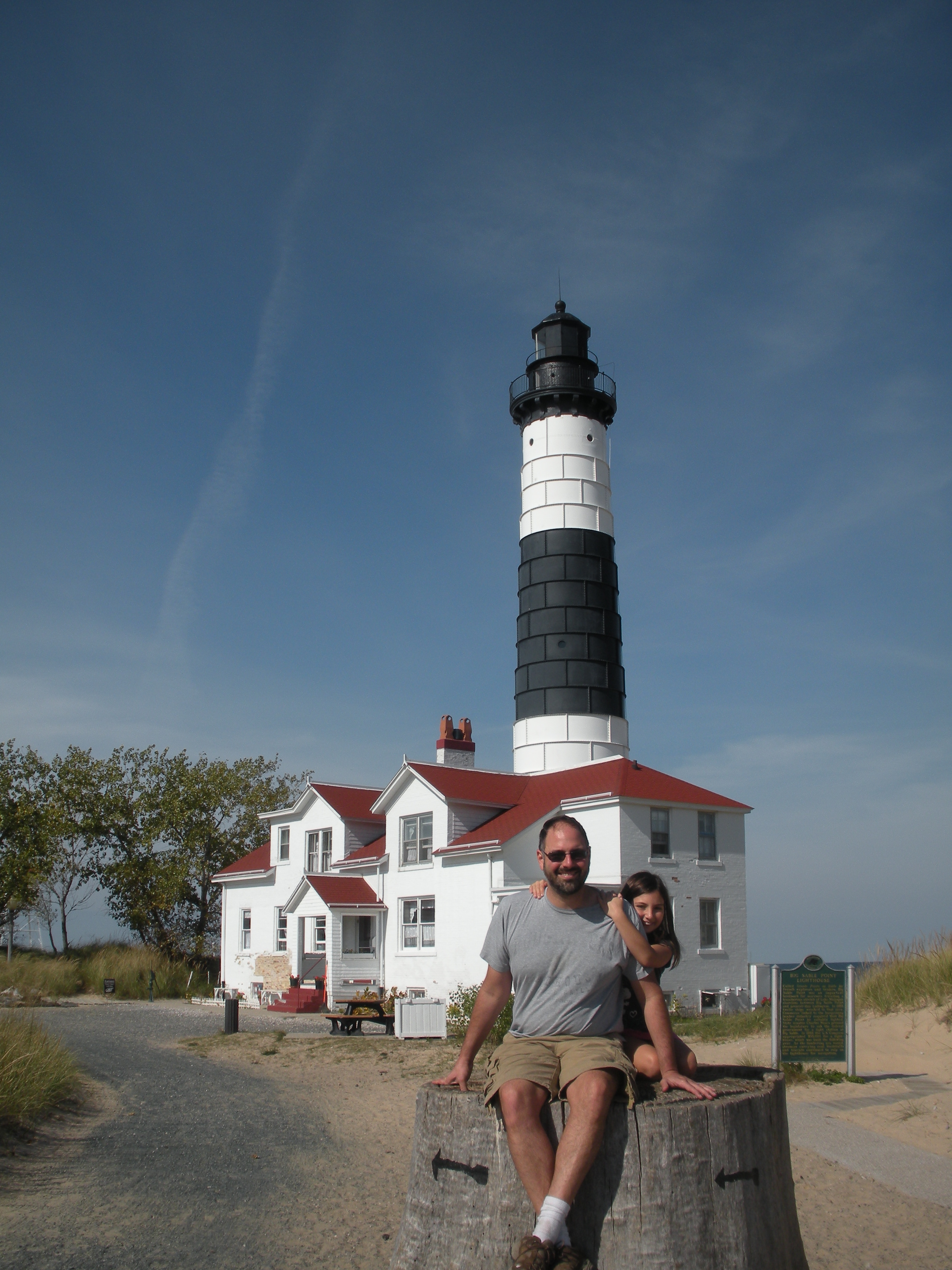 If you do go to Ludington State Park, do check out the Big Sable Point Lighthouse. Standing over one hundred feet tall the place is an easy mile and a half hike. That hike, by the way, is the difference between the place being a crazy overcrowded t-shirt pit and the quaint, easy going destination it actually is. It is as if for every ounce of effort you expend to get somewhere you lose two ounces of hell. Once at the lighthouse you can pay an extra few bucks and walk up the 130+ very tiny triangle stairs. Going up was not too bad. Going down was kind of scary. Henna and Corey opted out after only a dozen or so steps. They missed out on an amazing view. Here is maybe the coolest thing about the lighthouse. If you like giving tours to people, then you can live there rent free for two weeks. This link has all the information http://splka.org/.