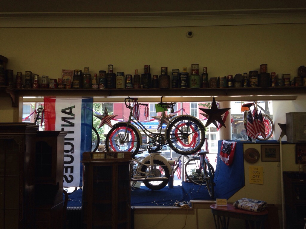 20140630-125036-46236592.jpg. Downtown Bangor Maine grabbing lunch before heading into discovery center. Cool antique store with tons of goodies (no violin though: Henna is looking for one). Cafe is nestled in a corner with retro chairs and tables…..no Stephen King sighting either.
