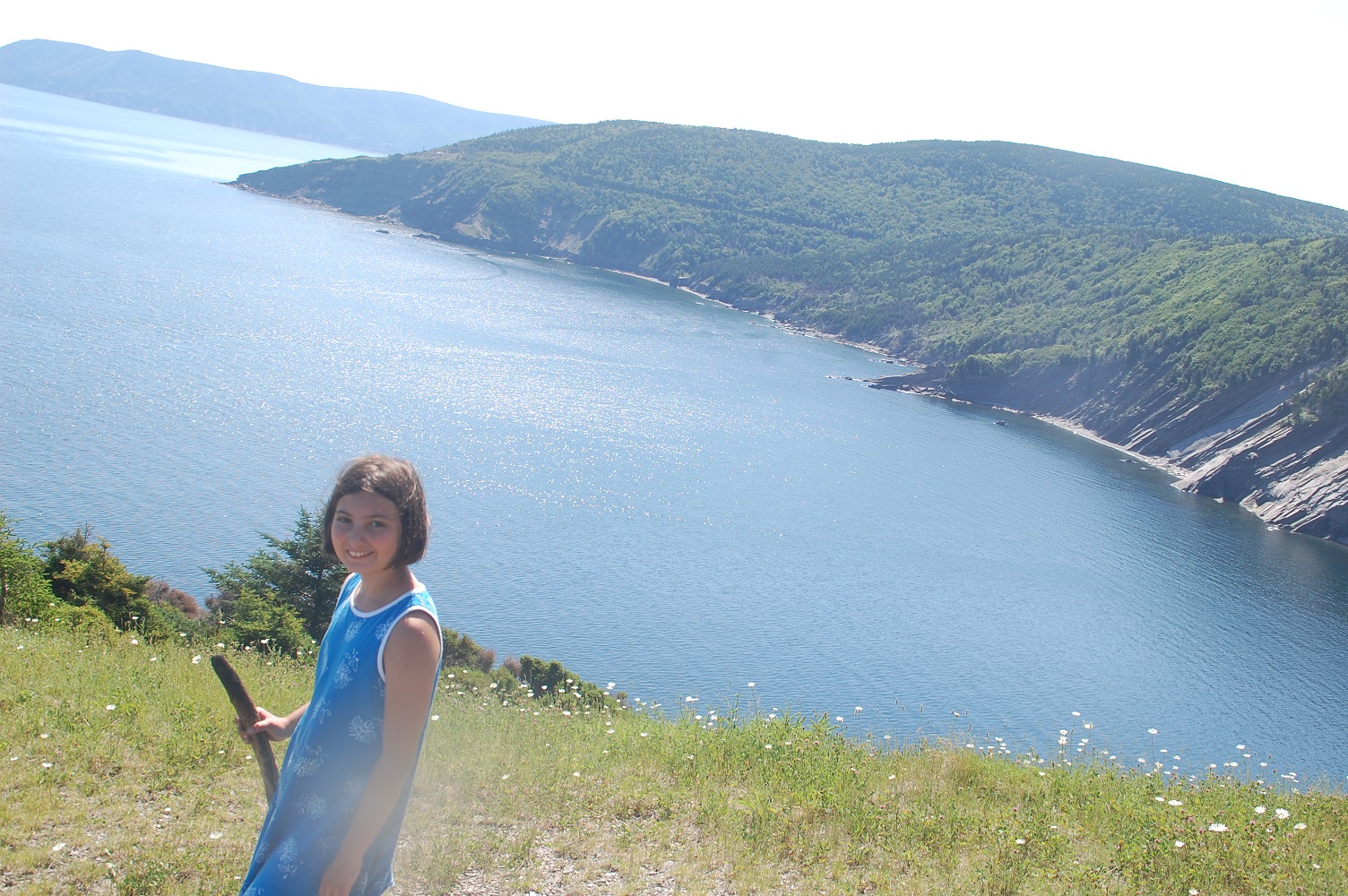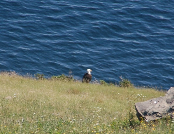 Our last full day in Nova Scotia began with us meeting ourselves again. This time it was two educators, Joseph and Shelly, from Minnesota. Joseph is of my tribe and Shelly is a Swede. Their children, like Henna, are Swedish Jews. Like us they also love to travel, are easy to talk to, and we hope our paths cross again. Before meeting up with them I spied a pod of pilot whales who flirted a bit with the coast beneath our feet. When I whispered “whales” into the tent it was the fastest I have ever seen the two sleeping princesses get up. Later we hiked one of the many trails in Meat Cove to a grassy knoll where a bald eagle was hanging out. We exchanged blog information and then left for the mostly deserted beach. Later we drove to a much more crowded but sandy beach on Cape Breton’s west side.