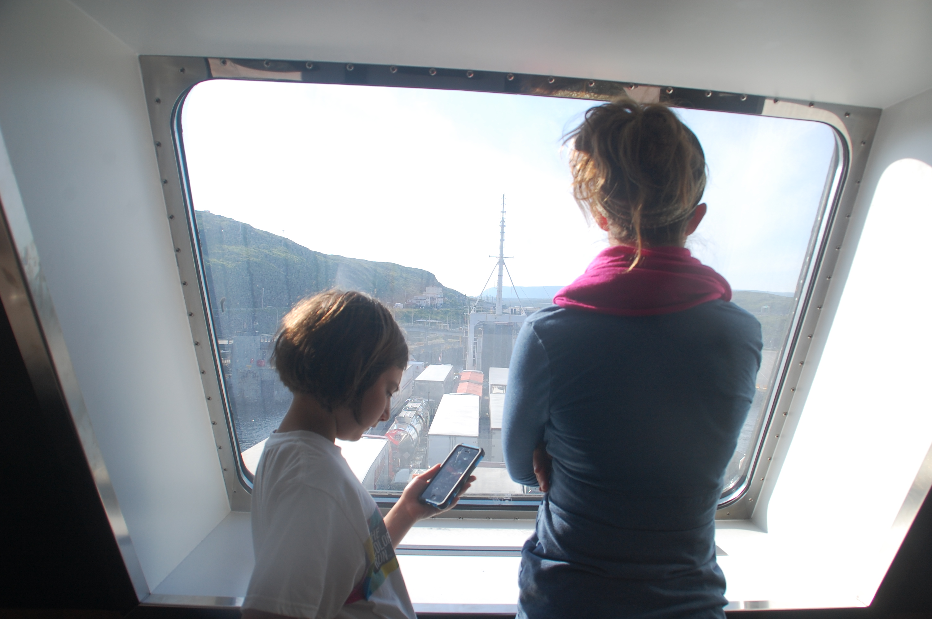 We arrived, almost two weeks later, back to the uninspiring town of North Sydney via the overnight car ferry from Argentina (pronounced Are-Hen-Chia). It was about $500 for two adults, a kid, and a car. A very small cabin with a bathroom, two almost touching bunk beds, and a television would have added another $200. We, along with dozens of other people, chose to sleep elsewhere on the ship and found the movie room (which played back to back movies until eleven) a perfect place to lay out our sleeping gear. Besides back to back movies until eleven there was also a lively bar with two talented singer-songwriters doing their thing, a couple of dining options, and a few other cruise ship like amenities. The boat, however, rocked so much that one of the performers went to bed early. Eventually the sea did settle down and all three of us had a relatively good night sleep.