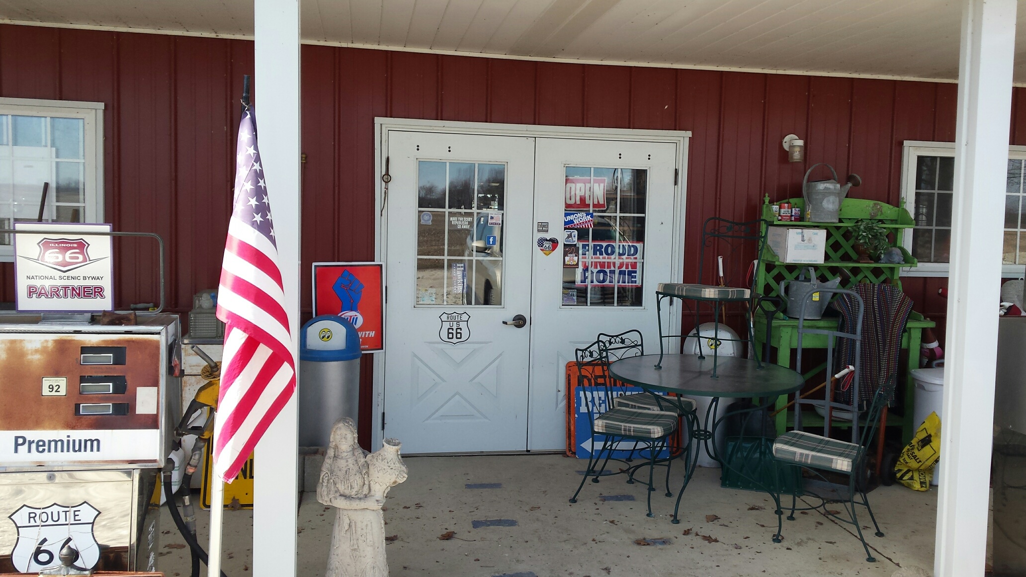 Although sometimes little more than a frontage road paralleling Interstate 55, Route 66 survives mostly intact through Illinois. This includes approximately one and a half mile of brick road laid out 1931. Immediately adjacent to this section is Becky’s Barn which is definitely a cut above the typical antique/road kitsch barns you see dotted along the highway. For starters there is owner Rick Hargett, an unabashed pro-union anti-Republican cuddly bear of a man who much more closely resembles Willie Nelson than Ralph Nader. Besides the numerous bumper stickers celebrating his views he also gives a 20% discount to all union members and soldiers (“The union builds the country and the soldiers protect it”). Sadly the namesake of his store, Becky, passed away last January. After flirting with closing down the store for good, Rick instead decided to stay open. And on a beautiful, almost summer like day in March, we were glad he did. Open Thursday through Sunday 10 A.M.-5 P.M. To get to their website click here.