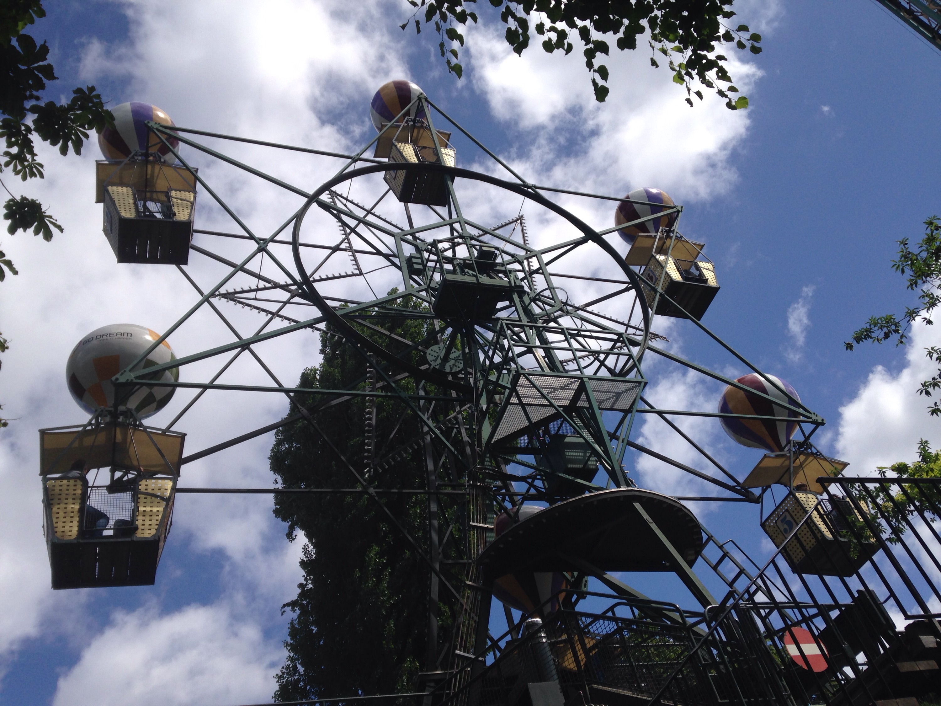 A short walk from our campground through a forested path (a path we shared with dog walkers and, to Henna’s great delight, a lot of slugs) and a twenty minute train ride brought us to the world’s second oldest amusement park.