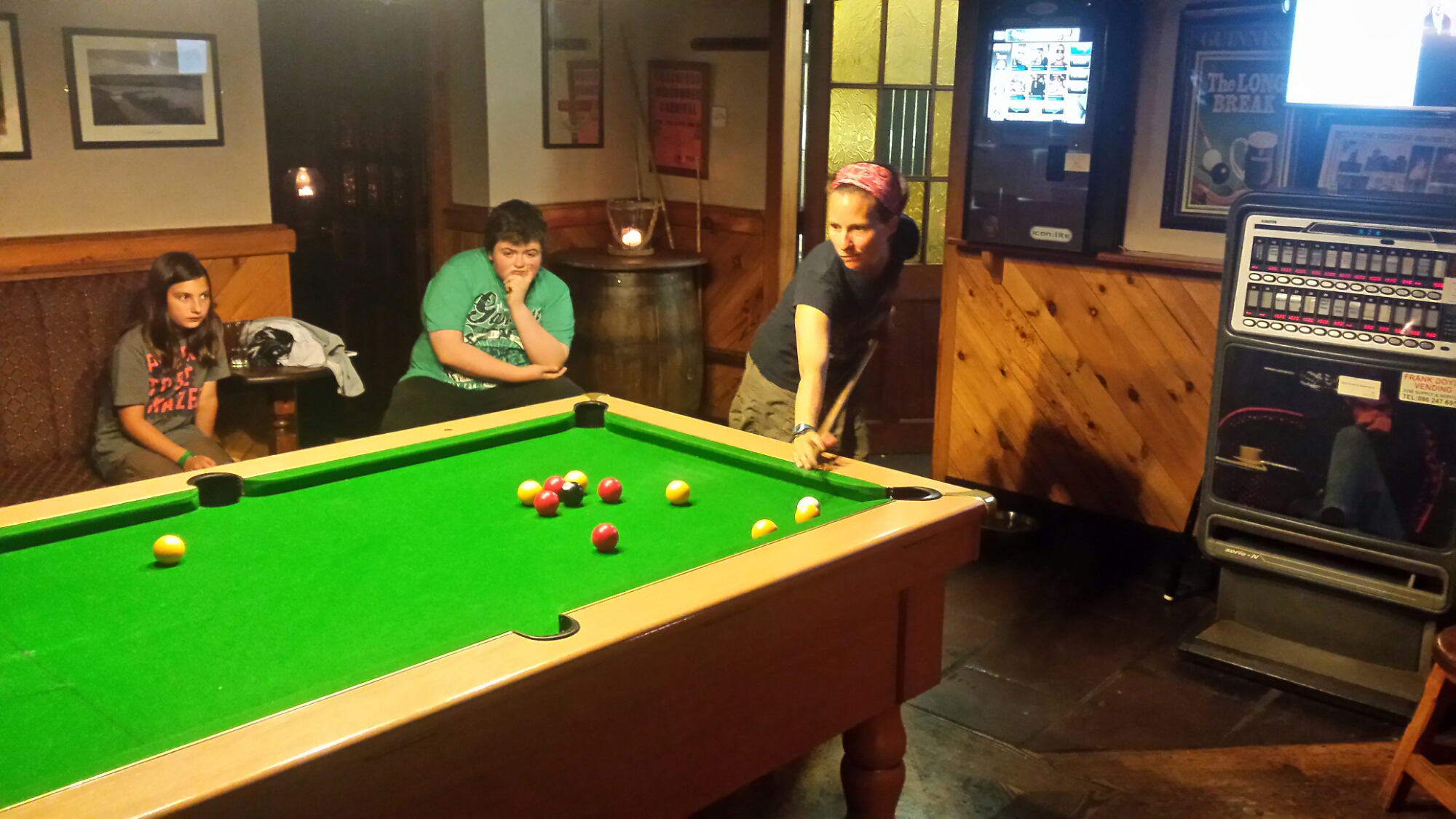 Driving from Blarney Castle the road twisted and the locals gave a friendly blast of the horn whenever they saw me coming (especially when I drifted a bit too far to the right). We pulled into a bed and breakfast over a pub and then settled into pints, pool, and whiskey. There was a very friendly and gassy terrier for Henna to play with. Corey beat two locals at pool. I learned a little about Galic football and other Celtic traditions. Love this island.