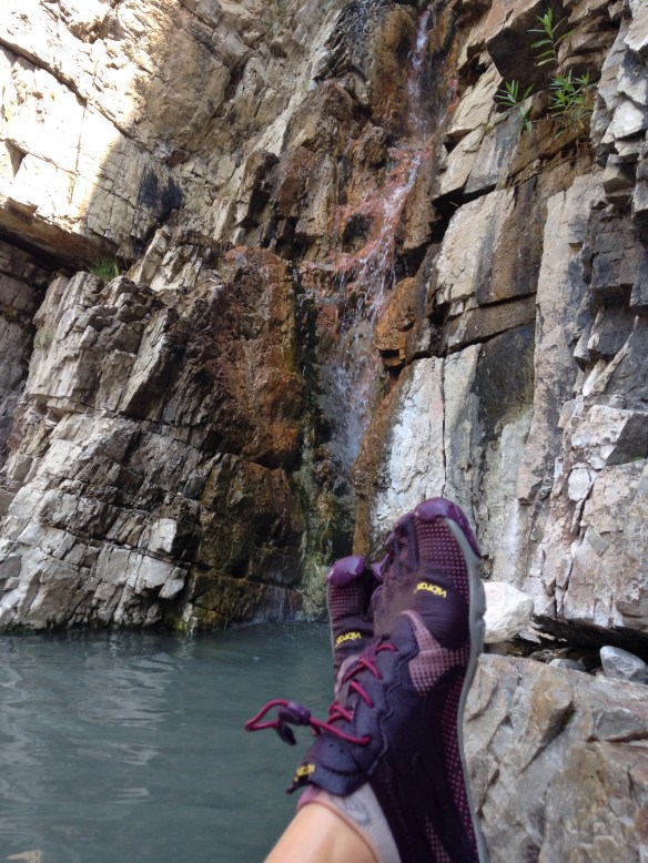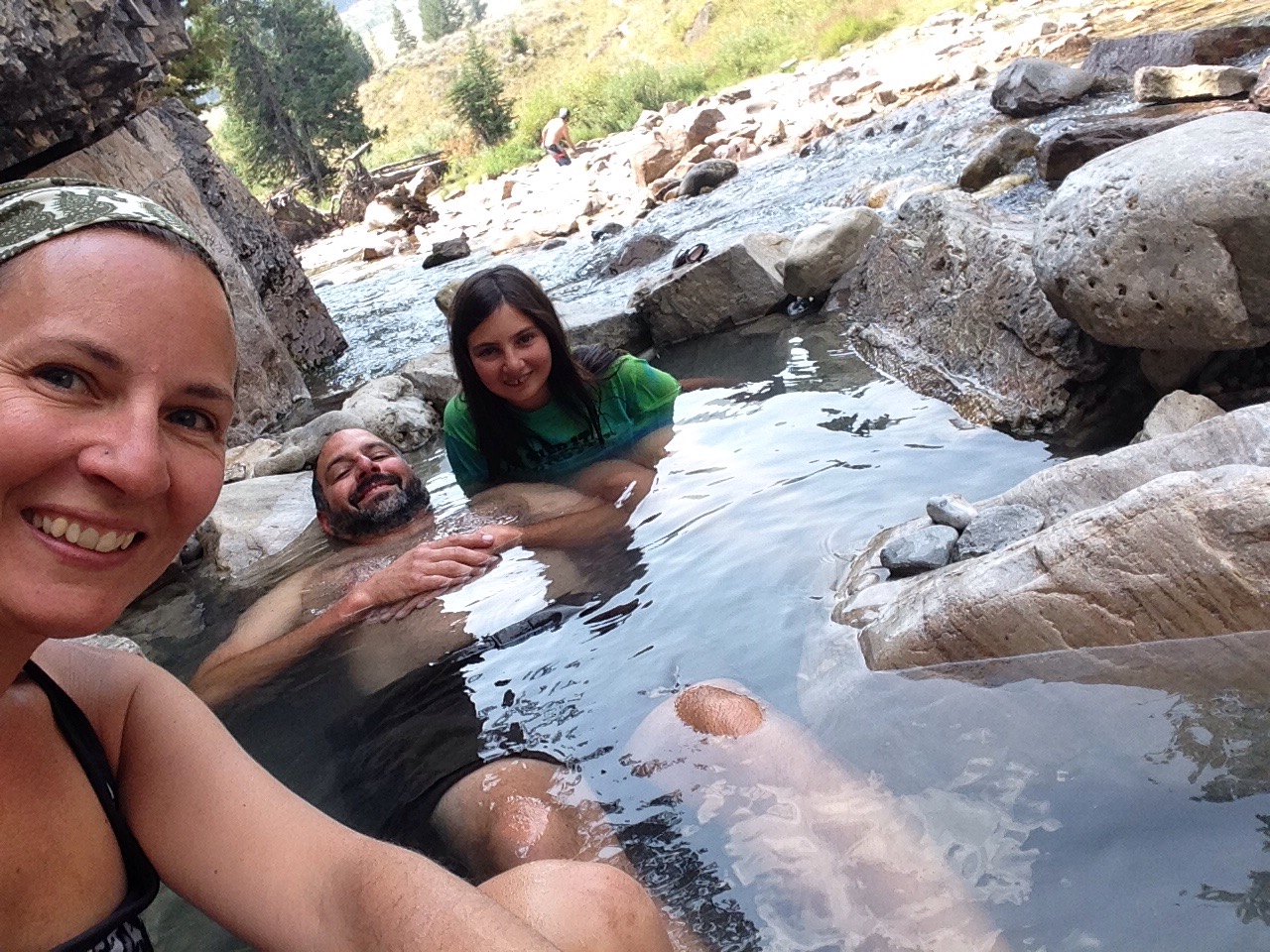 What exactly lies on the other side of this creek/river?  A makeshift hot tub out of carefully placed rocks that is filled by the cool Granite Creek and near boiling hot sulfur smelling water cascading down from the cliff walls.  There is really nothing comparable to plopping your but in a natural hot tub while staring at a waterfall set in the Wyoming semi-wilderness.  A mile down the road is another hot spring that you pay to enter but we saw no reason to check it out.  Heaven was right there lapping at our feet.
