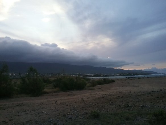 Other patterns this summer have involved cats. Cats tucked in Baby Bjorns being lugged up mountains. A cat used as a service pet by a nervous worker in the Tetons. And a whole mess of cats in a parked car next to us at a gas station in Nebraska. Then today on our first night in Maui we fight jet lag to see a beach and run into people volunteering their time and money to feed the 40+ feral cats hanging out at a harbor near Wailuku. They come nightly to pet, feed, and listen to the cats (whose plaintive meows clearly speak of their anxiety).