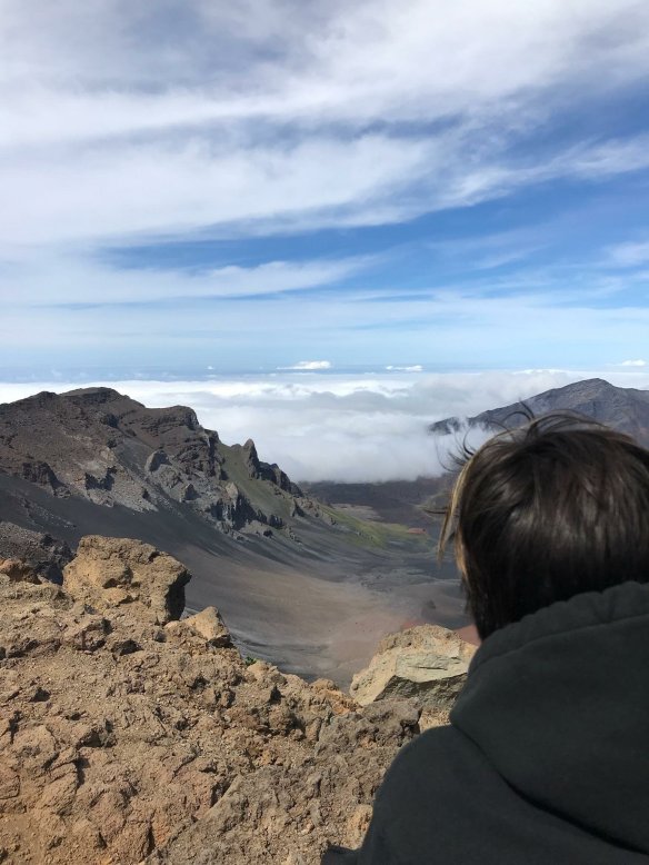 Up up up, like Jack climbing his beanstalk, you travel the park road to the summit of Haleakala. Then you peer down into the massive volcanic crater and marvel at the Martian like scenery.