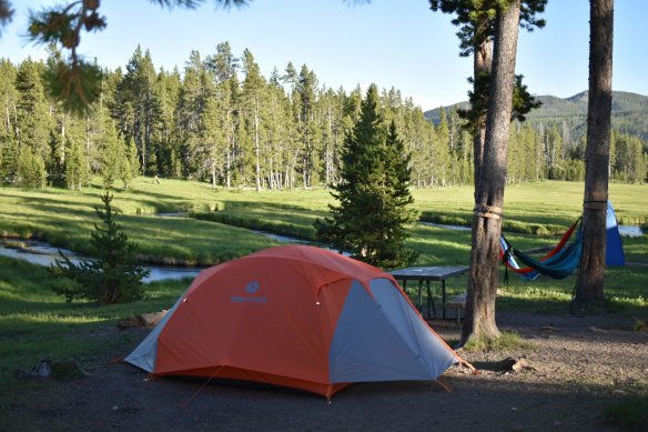 A couple of tents and one kid later we again camp alongside the beautiful Gibbon River at the Norris Campground