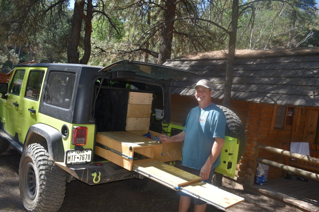 Frank from Texas showing off his creation. Him and his family are camping pros to the point that Frank brings a propane torch on the road (handy when starting a campfire).