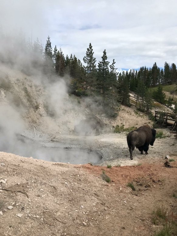 This bison appears blissfully unaware of Covid. Or is he? So far this summer there have been at least two bison to human “incidents.” Neither incident went well for the human.