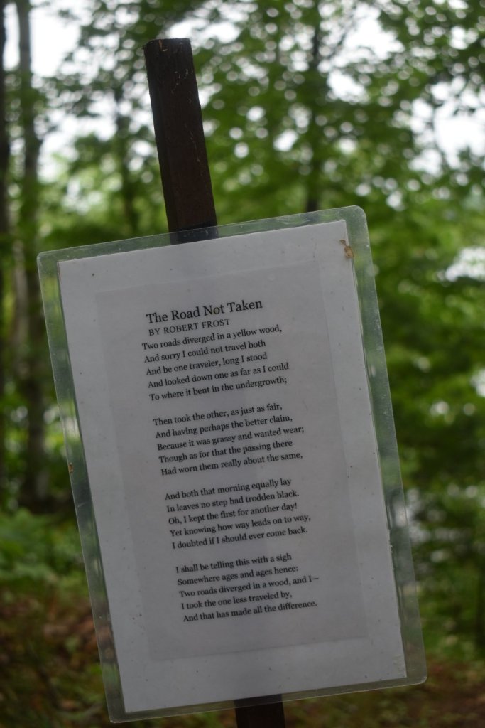 After crossing Lake Champlain we took a short “poetry hike” at Niquette Bay Stay Park.” It was a beautiful hike though the woods where we stopped ever so often to read a laminated poem stuck to a tree. At the trail head was a Nature Library. Then it was off to Burlington where we sipped maple syrup lemonade at a Farmer’s Market before browsing several used book stores. And now I am writing you about a quarter mile away from the Ben and Jerry’s factory. That my friend is a typical Vermont day.