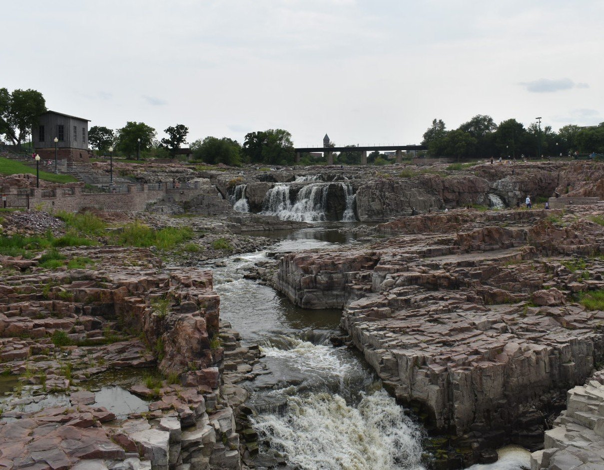 The saddest of the falls we visited this week was in Sioux Falls, SD. The falls themselves were fine although they have, per the park signs, seen better days. For example there use to be a beautiful wooded island smack dab in the middle of the rolling falls. People supposedly came from all over the world to picnic there (grainy photos show men and woman in very uncomfortable dress pretending to have a good time eating a sandwich outdoors). The island was later flooded after a dam was built to help generate a little electricity.