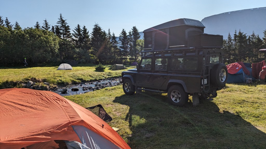 Today is our well earned Spa Day. Spa Day for us is best defined for what it ain’t. We ain’t walking up any hills today. Not taking down the tent (before yesterdays hike we planned on shipping off today). I sure as heck ain’t waking up Corey right now (it’s about 8:30 and I just crawled out of the tent a few minutes ago). Spa Day for us is sitting still and spending time at the local pool. A worker at the campground, an incredibly nice Canadian earning her Master’s at the satellite school right here in Isajafoir, recommended we actually drive about fifteen minutes to a much nicer pool. Will most likely follow that advice.