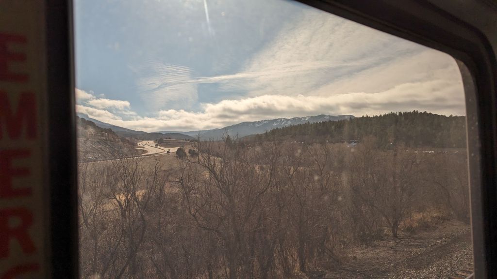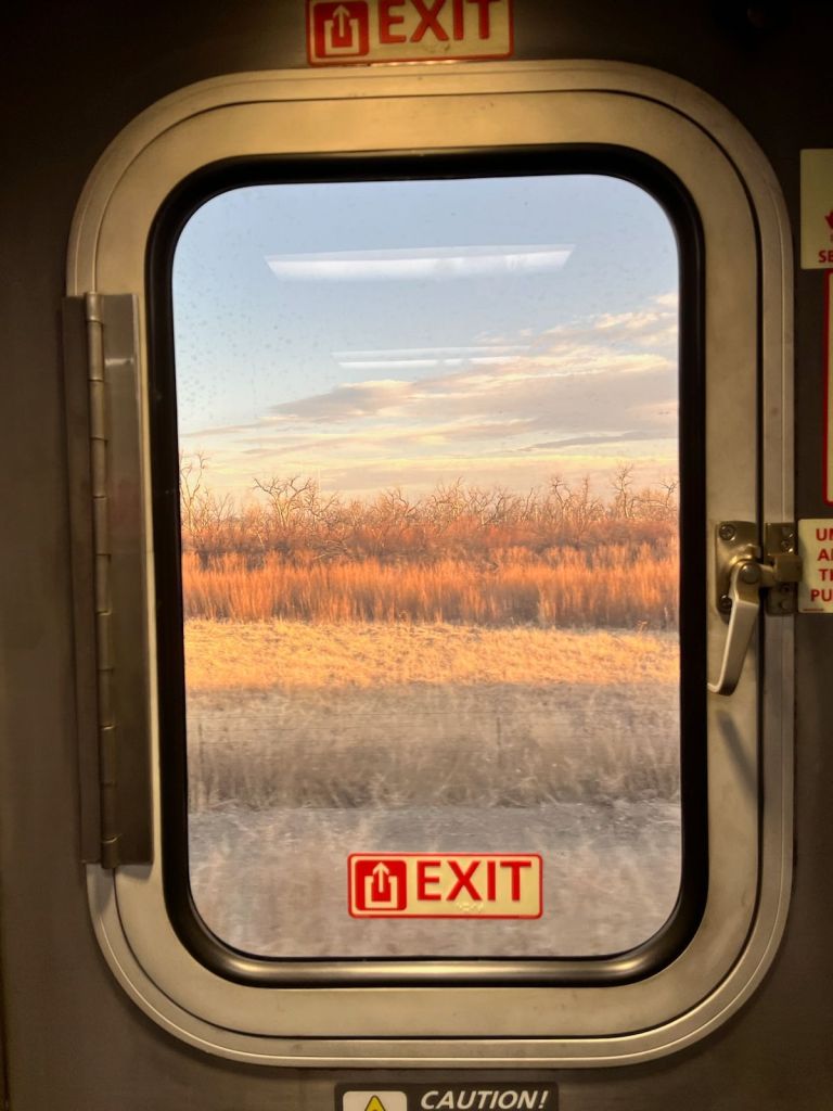 Are we there yet? No. Not exactly. We almost got here on time. Early actually. But track work in Albuquerque means we sit now fifteen miles away from our destination for maybe an hour (so far it’s been twenty minutes). Would we do it again? Of course. Actually we are doing it again in just a few days (Albuquerque back to Chicago again in a roomette). But why? Well it beats driving over Spring Break when we have no idea what the weather will be like. And it’s all so very exciting. I mean even taking a shower on Amtrak is an adventure.