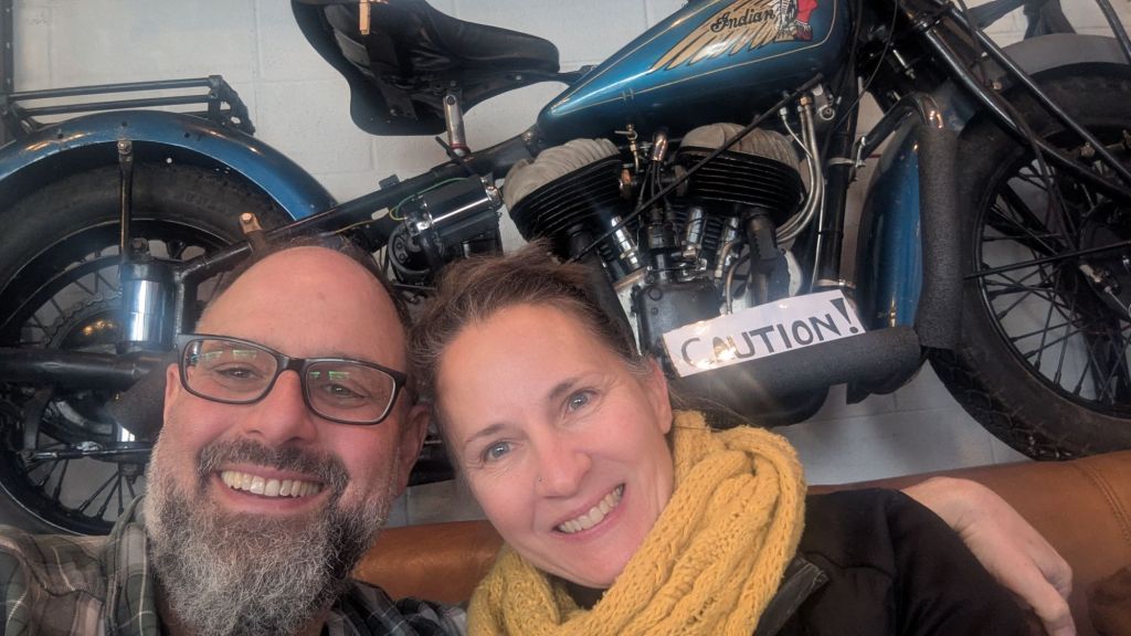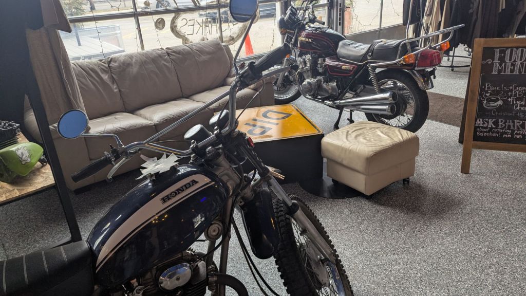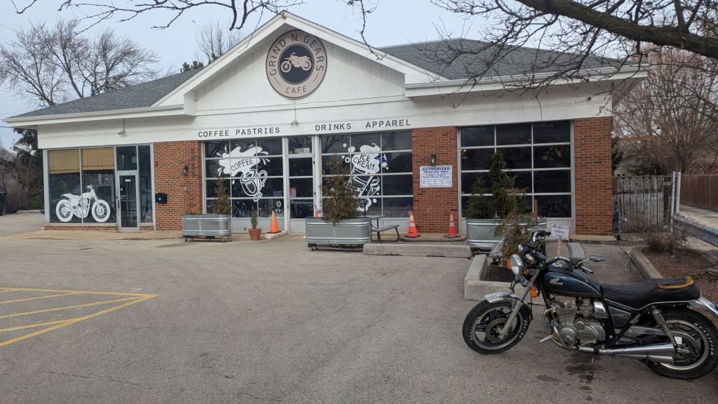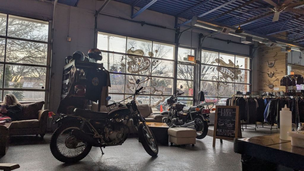 In-between the usual Christmas/Hanukah rush of errands we stumbled upon the Grind ‘N’ Gears Cafe (8030 W Oakton). While neither of us have ever actually ridden a motorcycle, we do appreciate their cool collection of bikes. The shop also makes excellent use of what we assume was a former auto repair shop. And their couches are super comfy. All of this makes it worthy of being Hennacornoelidays recommended.