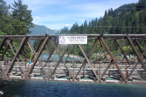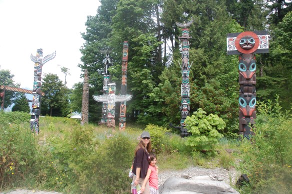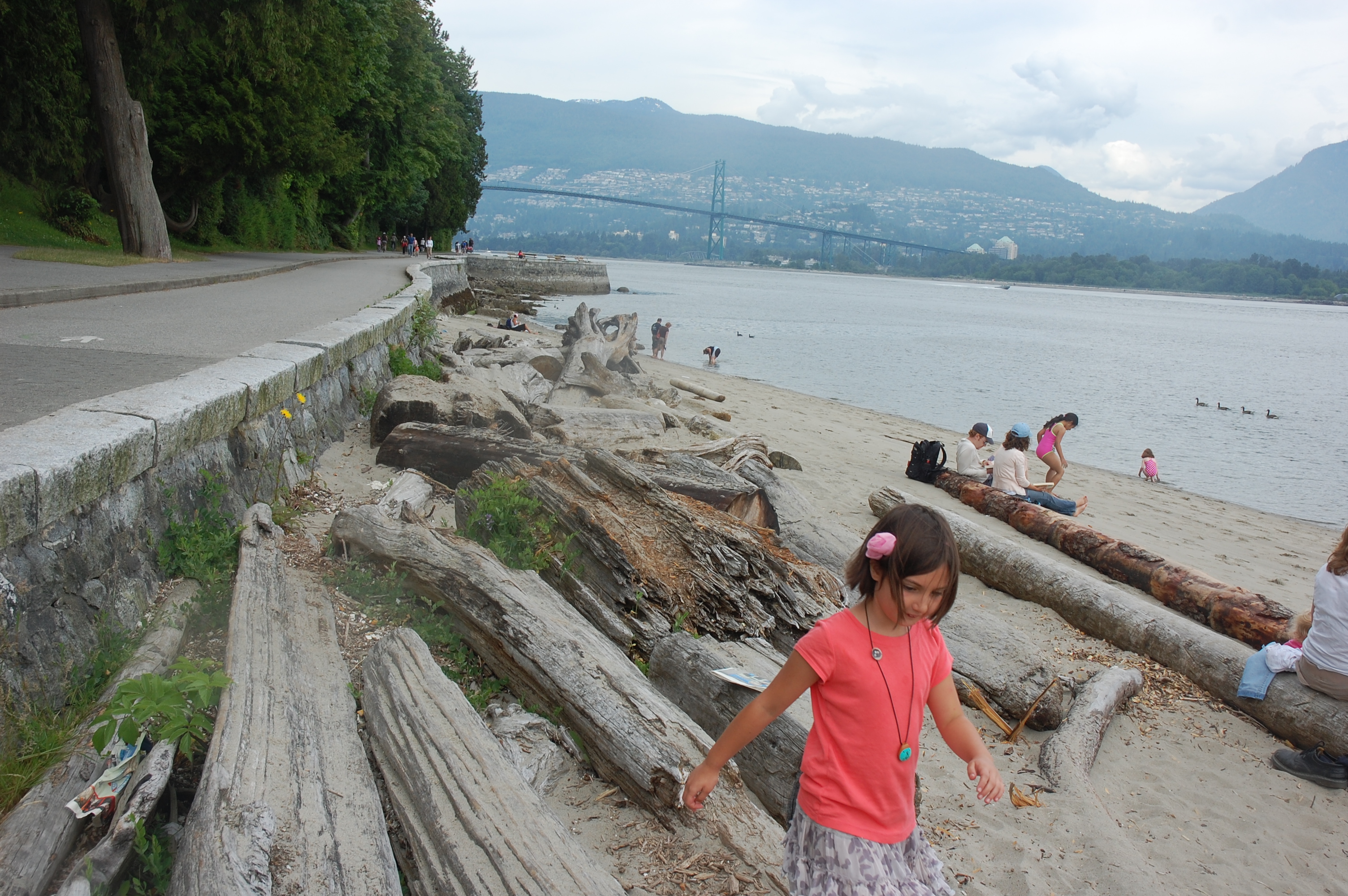 Skookumchuch means “strong water”, and since I had such difficulty pronouncing this trail I was at least glad to know what the heck it meant. This trial is a coast favorite, and leads you to tidewater that is forced through Skookumchuck Narrows and forms the Sechelt Rapids. The rapids are best viewed at high tide, and this specific day the rapids were being rated as XL. This 4K trail led us through a cedar nursery as this area was logged about 50 years ago, to drop us off at Roland point in which we were able to view the rapids. The viewing platform was simply an exposed barnacle covered rock that was assumedly much bigger before the tide came in. We especially enjoyed the small tidal pools filled with jelly fish and crabs. Henna explored these small worlds, and I fought back the fear of her falling back into the giant Hawaii sized waves behind her. We met some nice folks from Washington who took our picture. The guy taking our picture was a videographer and I felt like we were part of a vide shoot with the seriousness he brought to taking our picture.