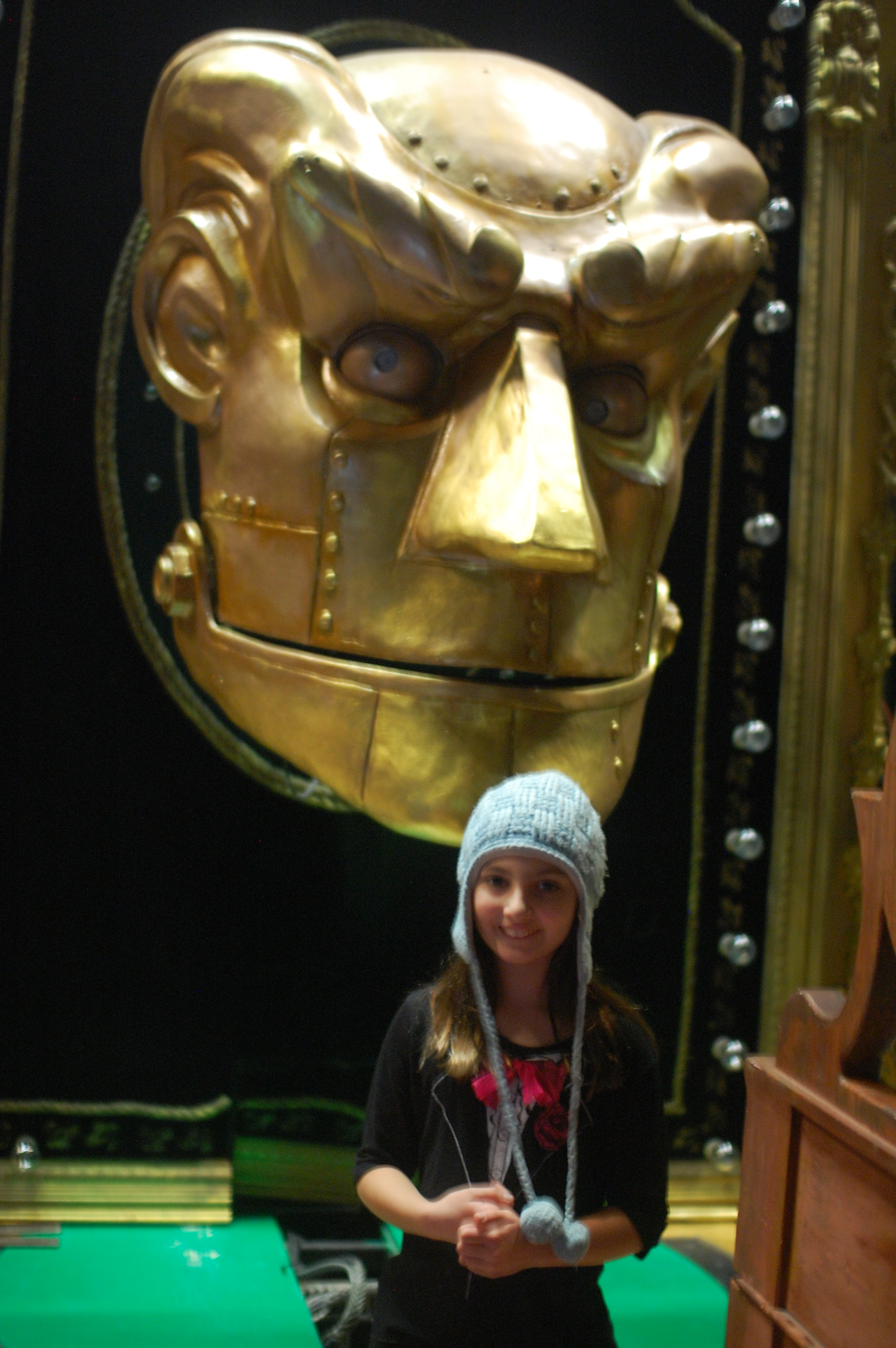 So on Hennacornoeliday (and yes, Pochachane did play his yearly trick on Henna the night before) we found ourselves undeterred by a freezing drizzle and a flat tire suffered a few blocks from our house. Going old school (we drove the blue truck) we made it downtown just in time to get our tickets and meet Stina at the Stage Door. The belly of the Oriental Theater is a cold subterranean maze which snakes around a series of small dressing rooms and common areas. People everywhere were calmly preparing for their roles (both on and back stage) in between general holiday inquiries and light conversations. The amazingly talented Alison Luff (Elphaba) talked camping and answered our questions while Stina made her green. Stina not only has to make her green, she has to make sure that everyone Alison touches on stage does not also turn green. Plus there is the sweat factor. Stina said that new ensemble members sweat a lot the first week on tour, then not so much afterwards. Sounds like a life lesson to me. Almost as impressive as her deft transformation of normal skin toned Alison into a green creature was her later quick work (under two minutes) changing Boq into the Tin Man.