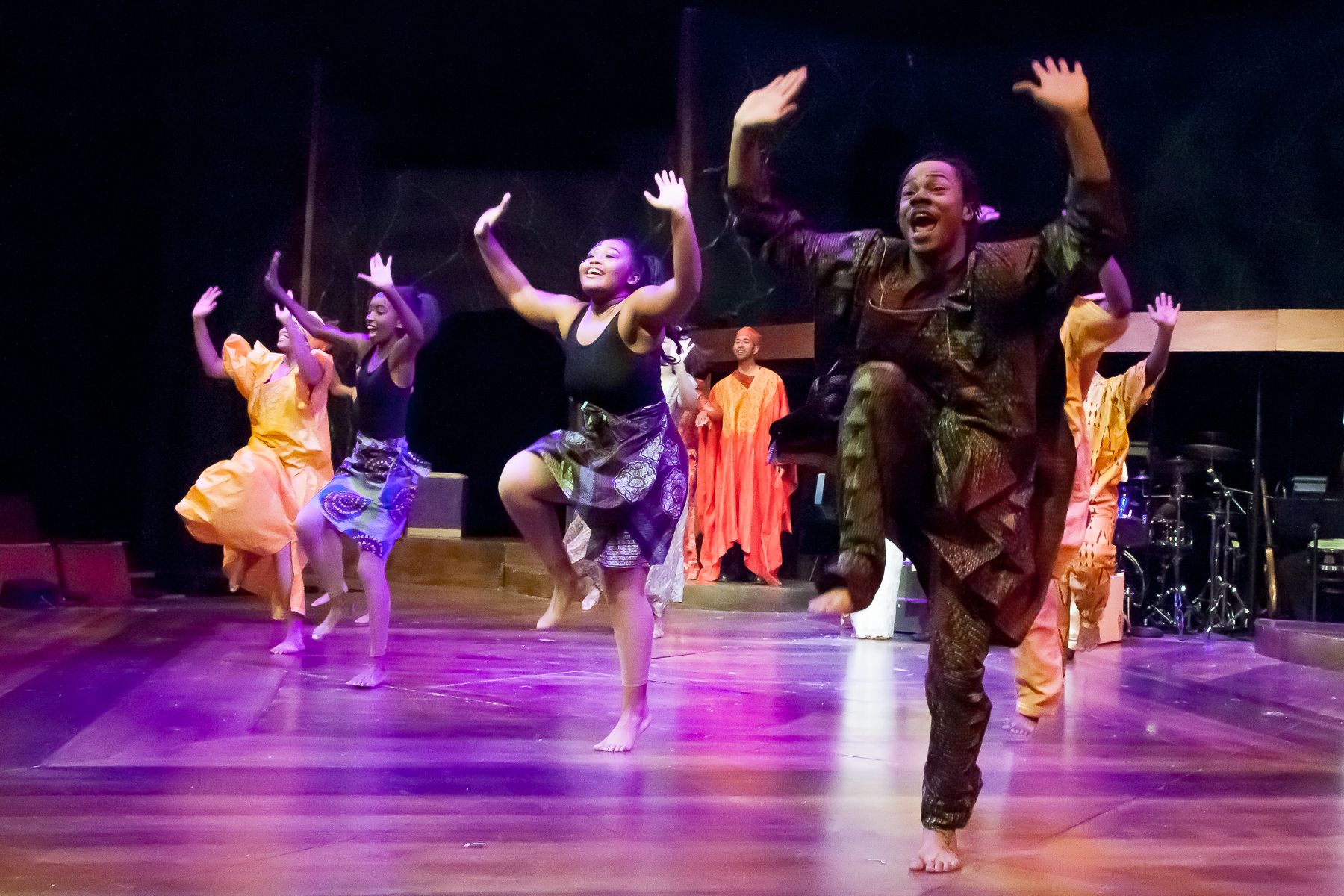 Corey and Henna watched the show way up close. I sat in a small carved out space a few feet from Mitch who worked an impressive looking sound board (he estimates that it is worth about $500,000). The area where I was consisted of about six chairs and a folding table. Sitting next to me was actress Dina Bennett (Midwife, ensemble member, and u/s to Madame Morrible) who was taking the day off. Every once in awhile she leaned over and whispered something clever to me. In a production full of nice, down to earth people, Dina still stood out for being both.