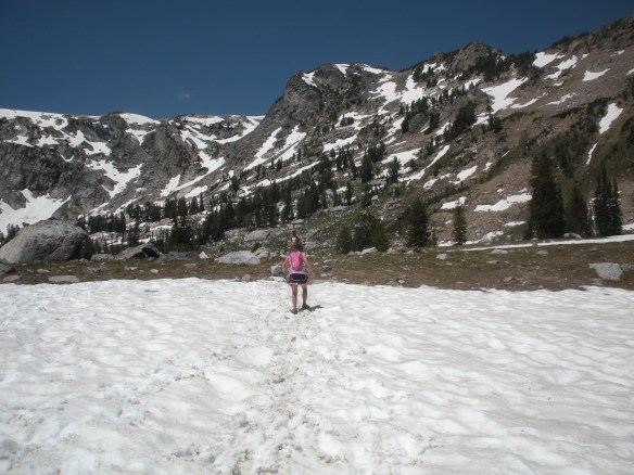 To be quick, this hike is an old favorite of ours. Noel and I initially back packed this hike almost 14 years ago. Then when we first took Henna here we travelled only part way. Last year we got just a bit closer. This year we had originally planned to back pack it with Henna. After realizing that we were not in mountain climbing shape just yet, we decided to go lighter, only carrying our food along. As we reached the place that we stopped at last year, and 2.7 miles from the beautiful Lake Solitude (all up hill), Henna decided we needed to continue. And then again, higher up the trail as we encountered a volunteer on the trail, to which he said something to the effect of knowing your limitations, Henna again turned and left him and her parents in the dust. When we finally made it to Lake Solitude, on the other side of the mountain, we all knew our painful descent was well worth the trip. Such is life I think.