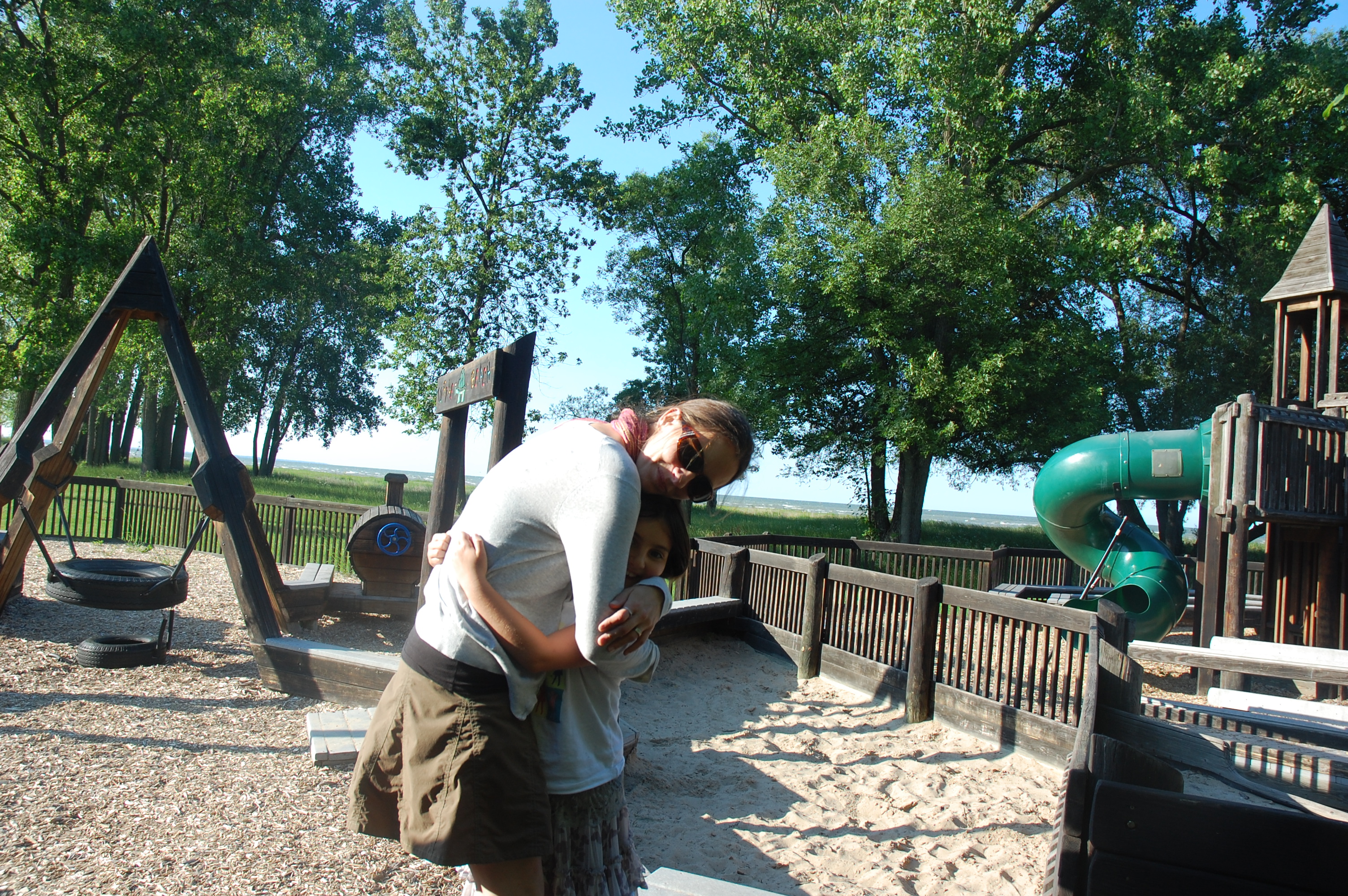 Lake Michigan has a state named after it, thousands of miles of beautiful beaches and harbor towns, Tim Allen voice overs, and the jewel of the Midwest (my hometown Chicago) anchored at the south end. Lake Superior is truly awesome; the second largest fresh water lake in the world. As treacherous as an ocean you respect Lake Superior. Lake Erie has the Rock and Roll Hall of Fame and Cleveland. Not the most impressive credentials, but something you remember. Lake Ontario is Canadian. And then there is Lake Huron. Yes, Mackinaw Island is on Lake Huron, but most people think it is in Lake Michigan. Lake Huron is that forgotten child, the one that does not get out of the house much. Last night we camped at Bay City SRA which is across the road from the Forgotten One. We arrived at early evening and played at a cool park overlooking the lake. There was a nice boardwalk trail that passed by marshes and delivered us to a beach were we looked for seashells. Later we roasted baby potatoes, hot dogs, and corn. The campground was boisterous and had an odd river/ wet mud smell. Today we plan on moving on in search of greater lakes.
